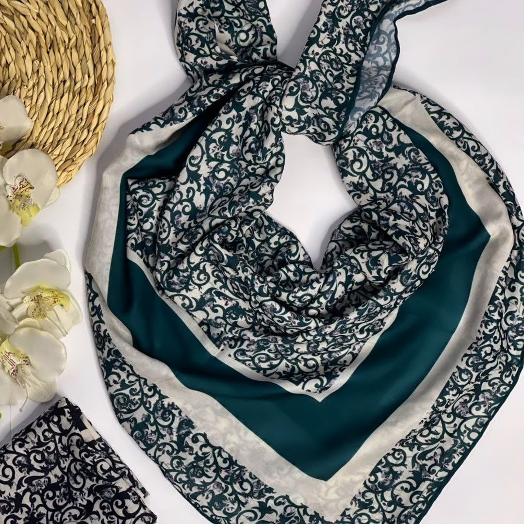 مدل : روسری نخی دست دوز جنس :نخی دست دوز برند : marigold سایز : 120120 کیفیت جنس و چاپ عالی +++AAA درجه 1