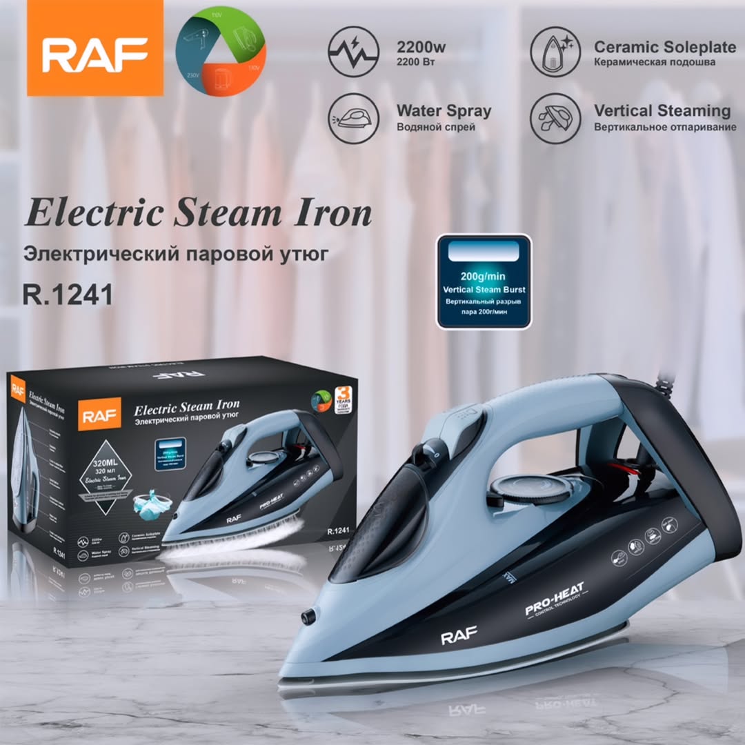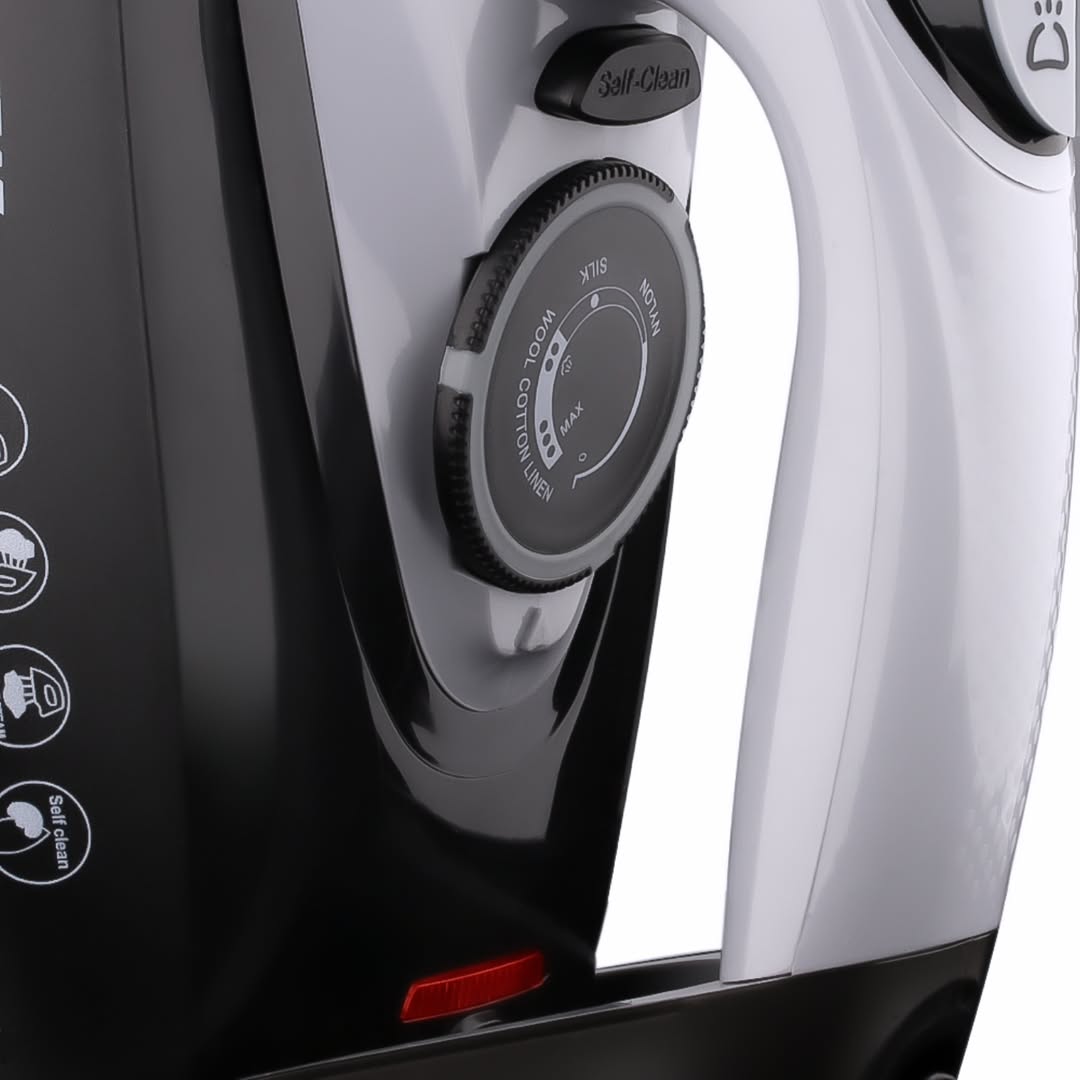 اتو اورجینال با سیستم ضد چکه و ضد رسوب، توان مصرفی ۲۲۰۰ وات، مخزن آب ۳۲۰ میلی لیتر، درجه حرارت قابل تنظیم، بدنه پلاستیکی با کیفیت، بخار دهی لحظه ای و پیوسته، کفی بزرگ سرامیکی ضد خش.