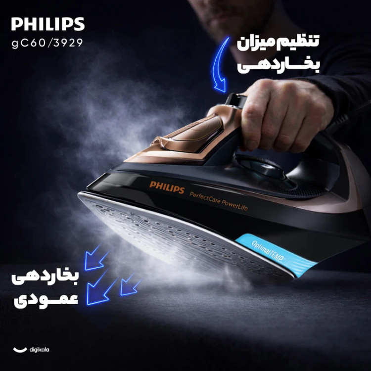 سایر توضیحات : دارای کفی SteamGlide Plus / سیستم OptimalTemp تشخیص هوشمند دما برحسب لباس / دریچهی مخزن آب بزرگ برای پرکردن آسان و سریع