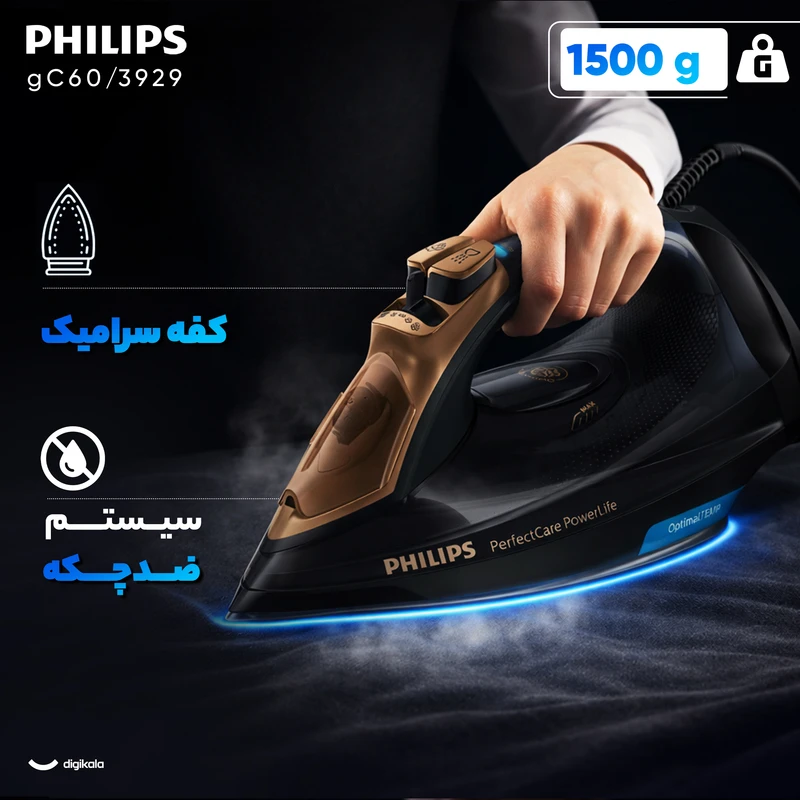 سایر توضیحات : دارای کفی SteamGlide Plus / سیستم OptimalTemp تشخیص هوشمند دما برحسب لباس / دریچهی مخزن آب بزرگ برای پرکردن آسان و سریع